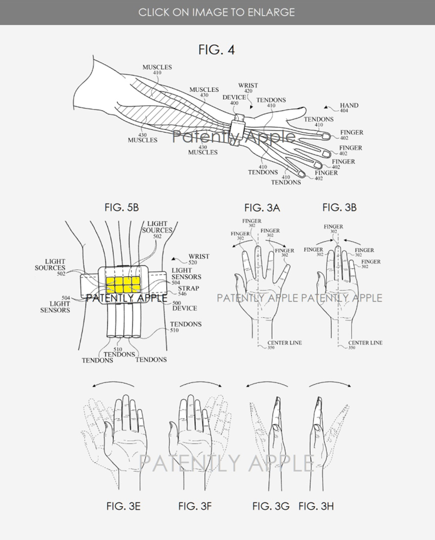 蘋(píng)果在美國(guó)專(zhuān)利局申請(qǐng)的Apple Watch 最新的手勢(shì)專(zhuān)利顯示,蘋(píng)果獲得了一系列很重要的手勢(shì)操作的專(zhuān)利技術(shù)。這個(gè)專(zhuān)利由蘋(píng)果的9個(gè)工程師聯(lián)合署名。